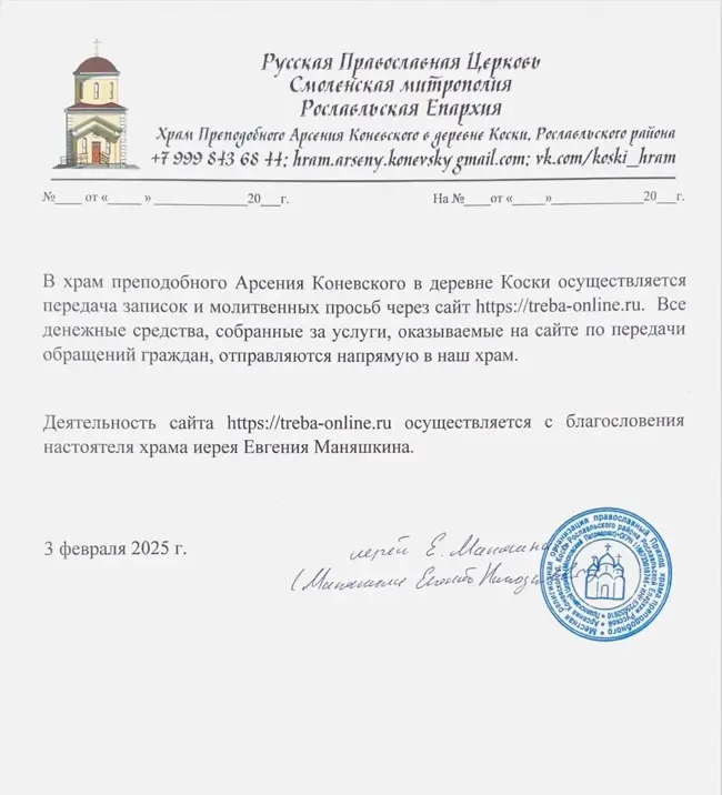 Мы сотрудничаем с действующими православными храмами, указанными на сайте. В каждом храме есть священнослужитель, ответственный за исполнение молитвенных прошений.