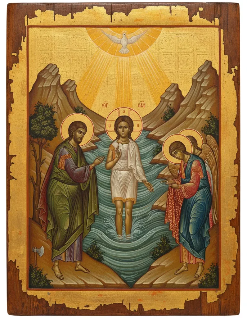 В момент крещения произошло нечто удивительное. Небеса раскрылись, Дух Святой сошёл на Христа в виде голубя, а голос Бога Отца провозгласил: «Сей есть Сын Мой возлюбленный, в Котором Моё благоволение». Так впервые в истории открылась тайна Троицы — Отец, Сын и Святой Дух явились миру одновременно. Отсюда второе название праздника — Богоявление.