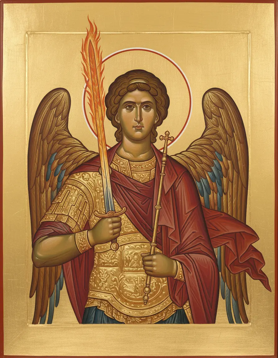 Архангел Михаил — один из высших ангельских чинов, Архистратиг (главнокомандующий) небесного воинства, победитель сатаны и защитник человеческого рода от сил зла. Имя Михаил в переводе с древнееврейского означает «Кто как Бог», что выражает его непоколебимую верность Творцу и борьбу против гордыни падших ангелов. Архангел Михаил почитается как покровитель воинов, защитник веры и помощник в духовной брани.